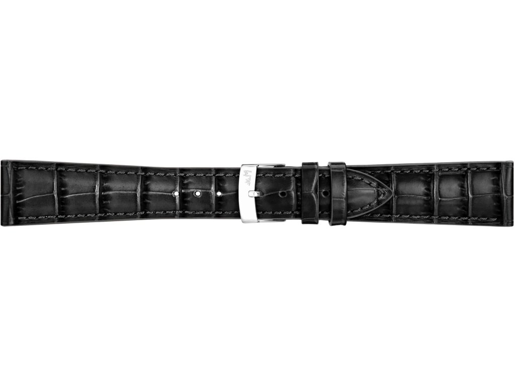 Řemínek na hodinky od firmy Morellato, modelové označení Bayon 6167C54.019. Materiál řemínku je kůže. Dostupný je v šířce 12 až 22 mm. Řemínek dodáváme včetně 2 ks stěžejek. Klasický řemínek na hodinky, vyrobený v novém, elegantním lesklém provedení s jemným aligátořím vzorem s drobnou strukturou. Tmavě zabarvené okraje dodávají řemínku nadčasový a sofistikovaný vzhled. Klasické zužování směrem ke sponě podtrhuje jeho elegantní tvar a pohodlné nošení. Standardní velikost je 120 + 74mm a zkrácená pak 114 + 71mm.