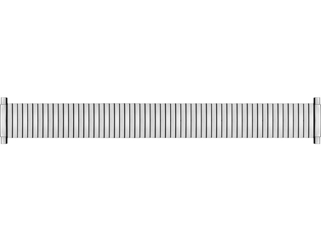 Řemínek na hodinky od firmy A-nis, modelové označení AOSP008. Materiál řemínku je ocel. Dostupný je v šířce 10 až 22 mm. Řemínek dodáváme včetně 2 ks stěžejek. Řemínek má pružné uchycení od 10 do 14mm a od 16 do 22mm u širší varianty. Lesklé provedení.