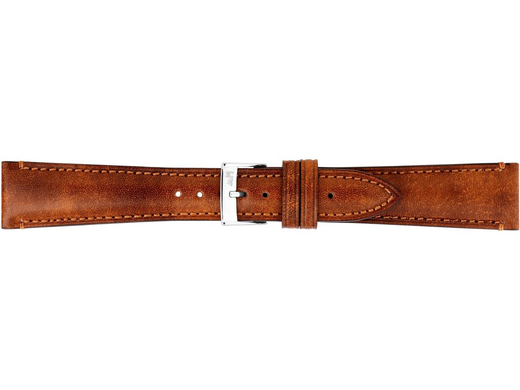 Řemínek na hodinky od firmy Morellato, modelové označení REGGIANI 6122E40.041. Ručně dělaný řemínek. Materiál řemínku je kůže. Dostupný je v šířce 14 až 22 mm. Řemínek dodáváme včetně 2 ks stěžejek. Klasický, elegantní řemínek vyrobený z lesklé, rostlinně činěné kůže, zpracovaný ručním tampováním pro dvoubarevný efekt. Tmavé okraje vytvářejí výrazný kontrast. Kolekce Morellato Manufatti. Délka řemínku je 120 + 80mm u standardní velikosti a 114 + 74 u zkrácené.